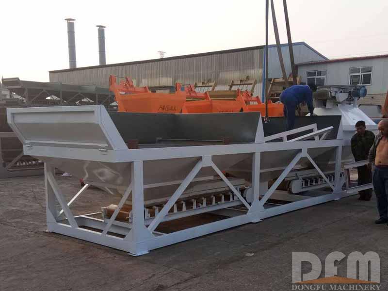 PLD1200 Concrete Batching Machine that accumulated weighing with 4 hoppers accomplish the batching procedure of 4 kinds of materials.